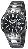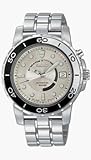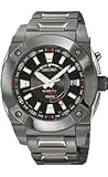 Price : $220.50 Three-hand Japanese movement featuring Kinetic technology (powered by wearer's movement), Power reserve indicator push-button positioned at 2, Brushed/polished silver-tone hour minute and sweep seconds hands with Lumibrite accents, Applied and polished silver-tone Lumibrite baton hour markers, White Arabic numbers and indices mark outer minute track, Analog date display at 3, Polished black bezel marked with white-enamelled numbers/indices for additional minutes recording, Brushed and polished black ion-plated stainless steel round case, Notched and polished crown, Stainless steel skeleton caseback exposing watchworks, Hardlex Crystal, 100 meters/330 feet water resistant