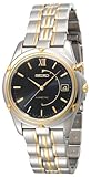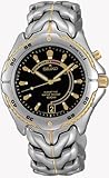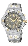 The Seiko Men's Kinetic Two-Tone Watch includes bold gold-tone hour indexes and a gold-tone bezel with black hour markers for a polished appearance. The timepiece is constructed with a stainless steel case, a gold-tone-stainless-steel bezel with black hour indexes, and a two-tone-stainless-steel link bracelet with a secure push-button-fold-over clasp. A durable hardlex window shields the black dial face, which features gold-tone hour markers, gold-tone minute indexes, and gold-tone Arabic numeral seconds indexes. The dial also includes gold-tone watch hands and a date calendar at four o'clock. This Japanese-kinetic-powered timepiece is water resistant to 330 feet. It is presented in a luxuriously padded Seiko case. Kinetic: A powerhouse in technological innovationLike mechanical and quartz, Kinetic is a platform. Over the past 20 years, SEIKO has created on this platform a suite of Kinetic movements, each bringing unique features to the consumer.It was at the 1986 Basel Fair that SEIKO unveiled its first Kinetic prototype. Introduced under the trial name of 'AGM', it was the first watch in the world to convert kinetic movement into electrical energy. It was the first step in a development that, 20 years later, has made Kinetic synonymous with environmental friendliness, high performance and long-lasting convenience to a generation of users worldwide. From the launch in 1988 of the first commercially available watch (then under the new name AGS) until today, over eight million Kinetic watches have been sold (as of 2007).In 1998, Kinetic Auto Relay was released, extending the 'at-rest' operating period of the watch to a remarkable 4 years. 1999 saw the launch of the Ultimate Kinetic Chronograph, a masterpiece which fused the very best of SEIKO's mechanical and electronic watch making skills, and in 2003 another Kinetic Chronograph was launched. At Baselworld 2005, the Kinetic Perpetual made its first appearance, combining Kinetic convenience and longevity with a perpetual calendar, correct to the year 2100. In 2007, SEIKO's emotional technology Kinetic Direct Drive is introduced.