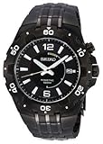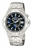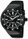 The Seiko Men's Adventure Kinetic Diver Watch isn't quite ready to travel 20,000 leagues under the sea, but this adventurous timepiece will accompany you down an impressive 660 feet. Constructed with a strong stainless steel case, the watch includes a grooved, unidirectional stainless steel bezel with white seconds indexes, and a tough urethane strap with a secure buckle strap. A durable hardlex window protects the black dial face, which features large white dot-and-arrow hour markers. The dial also includes white minute markers, complementary watch hands, and a convenient date calendar at three o'clock. The watch is powered by kinetic movement. It is presented in a luxuriously padded Seiko case. Kinetic: A powerhouse in technological innovationLike mechanical and quartz, Kinetic is a platform. Over the past 20 years, SEIKO has created on this platform a suite of Kinetic movements, each bringing unique features to the consumer.It was at the 1986 Basel Fair that SEIKO unveiled its first Kinetic prototype. Introduced under the trial name of 'AGM', it was the first watch in the world to convert kinetic movement into electrical energy. It was the first step in a development that, 20 years later, has made Kinetic synonymous with environmental friendliness, high performance and long-lasting convenience to a generation of users worldwide. From the launch in 1988 of the first commercially available watch (then under the new name AGS) until today, over eight million Kinetic watches have been sold (as of 2007).In 1998, Kinetic Auto Relay was released, extending the 'at-rest' operating period of the watch to a remarkable 4 years. 1999 saw the launch of the Ultimate Kinetic Chronograph, a masterpiece which fused the very best of SEIKO's mechanical and electronic watch making skills, and in 2003 another Kinetic Chronograph was launched. At Baselworld 2005, the Kinetic Perpetual made its first appearance, combining Kinetic convenience and longevity with a perpetual calendar, correct to the year 2100. In 2007, SEIKO's emotional technology Kinetic Direct Drive is introduced.