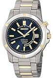 Price : $378.79 Gold-Tone Stainless Steel Case. Gold-Tone Stainless Steel Strap. Blue Dial. One-Way Rotating Bezel. Hardlex Crystal. Fold-over-push-button-clasp-with-safety. 45 mm Case Diameter. Quartz Movement. Water Resistant At 100 Meters (330 Feet). Seiko Kinetic Two-Tone Stainless Steel Mens Watch SKA245