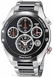 The heavy-duty Seiko Men's Mechanitech Kinetic Chronograph Watch includes three chronograph subdials the minutes, seconds, and hours as they pass, as well as a speed-calculating tachymeter encircling the dial. This high-performance watch is constructed with a stainless steel case, a stationary stainless steel bezel with tachymeter, and a stainless steel link bracelet with a push-button-deployment clasp. A durable hardlex window shields the black-and-gray dial face, which features the three chronograph subdials, silver and red watch hands, and a discrete date calendar at the six o'clock position. Powered by kinetic movement, the watch is water resistant to 330 feet. It is presented in a luxuriously padded Seiko case. Kinetic: A powerhouse in technological innovationLike mechanical and quartz, Kinetic is a platform. Over the past 20 years, SEIKO has created on this platform a suite of Kinetic movements, each bringing unique features to the consumer.It was at the 1986 Basel Fair that SEIKO unveiled its first Kinetic prototype. Introduced under the trial name of 'AGM', it was the first watch in the world to convert kinetic movement into electrical energy. It was the first step in a development that, 20 years later, has made Kinetic synonymous with environmental friendliness, high performance and long-lasting convenience to a generation of users worldwide. From the launch in 1988 of the first commercially available watch (then under the new name AGS) until today, over eight million Kinetic watches have been sold (as of 2007).In 1998, Kinetic Auto Relay was released, extending the 'at-rest' operating period of the watch to a remarkable 4 years. 1999 saw the launch of the Ultimate Kinetic Chronograph, a masterpiece which fused the very best of SEIKO's mechanical and electronic watch making skills, and in 2003 another Kinetic Chronograph was launched. At Baselworld 2005, the Kinetic Perpetual made its first appearance, combining Kinetic convenience and longevity with a perpetual calendar, correct to the year 2100. In 2007, SEIKO's emotional technology Kinetic Direct Drive is introduced.