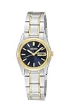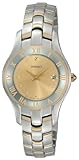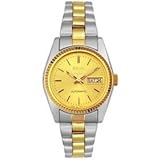 Price : N/A . . . . Stainless steel case and bracelet with gold-tone accents . . Champagne Dial . . Gold-tone hands and markers . . Date window at the 3 o'clock position . . Curved Hardlex mineral glass crystal . . Water resistant to 50 Meters (165 feet) . . Bracelet features a deployment clasp with push button release . . 27mm Case width (Approximately 1 1/16") . .