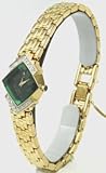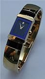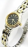 Price : $237.49 . . . . Polished stainless steel case and bracelet with Gold-tone accents . . Black dial with gold tone hands and markers . . Hardlex mineral glass crystal . . Water resistant to 30 meters (100 Feet) . . Bangle style bracelet features a Jeweler's style clasp . . 15.2mm Case Width (Approximately 5/8") . .
