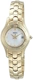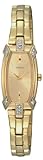 Price : $119.95 . . . . 8 Genuine diamond accents . . Gold-tone stainless steel case and bracelet . . Hardlex mineral glass crystal . . Water resistant to 30 Meters (100 Feet) . . Bracelet features a jeweler's style clasp . . 14.3mm Case Width (Approximately 9/16") . .