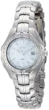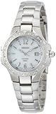 Price : N/A . . . . 22 Genuine diamond case accents . . White mother of pearl dial . . Stainless steel case and bracelet . . Date window at the 3 o'clock position . . Hardlex mineral glass crystal . . Water resistant to 100 meters (330 Feet) . . Bracelet features a deployment clasp with push button release . . 28mm Case width (Approximately 1 1/8") . .