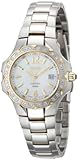 Price : N/A . . . . Stainless Steel Case and Bracelet with Gold-Tone Accents . . White Mother of Pearl Dial . . 24 Genuine Diamonds around the bezel . . Sapphire Crystal . . Date window at 3 o'clock position . . Water Resistant to 100 meters . . Push-button release clasp . . 28mm Case Width . .