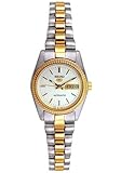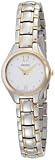 Price : N/A . . . . Stainless steel case and bracelet with gold tone accents . . White dial with gold tone hands and markers . . Hardlex mineral glass crystal . . Water resistant to 30 meters (100 feet) . . Bracelet features a fold over clasp with push button release . . 22mm Case Width (Approximately 7/8") . .