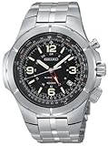 Style and technology come together in this Men's Flight Computer Watch from Seiko. Featuring revolutionary kinetic movement and an automatic power generator, which mean you'll never need to change a battery, this full-featured timepiece offers a Greenwich Mean Time indicator, power reserve indicator function, analog date display at four o'clock, and a rotating inner dial ring with (E6B) slide rule markings for pilots who need to make rapid calculations and conversions of flight data. And with a silver-tone stainless steel bezel and crown, polished stainless steel case, and a stainless steel bracelet band held in place by a fold-over-push-button clasp with a safety, this watch offers a luxurious look and feel that makes its performance even more remarkable. Easy-to-read white hands, bold Arabic numerals at three, six, nine, and 12 o'clock, markers with luminous accents, and small indices marking each minute and second stand out against the black dial. A unique screw-down see-through caseback lets gives you a glimpse of the precision mechanisms inside. This watch is water resistant to 330 feet and is backed by a three-year manufacturer warranty.